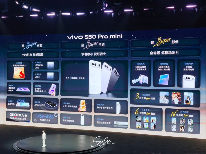 S50系列全系搭载高通骁龙8系芯片,Pro mini更是首批用上第五代骁龙8,跑分突破330万。搭配LPDDR5X Ultra内存和UFS 4.1闪存,重度游戏和多任务处理都稳稳的。4200mm²的VC液冷散热压住发热,6500mAh大电池保证续航,Pro mini还支持40W无线闪充和反向充电。